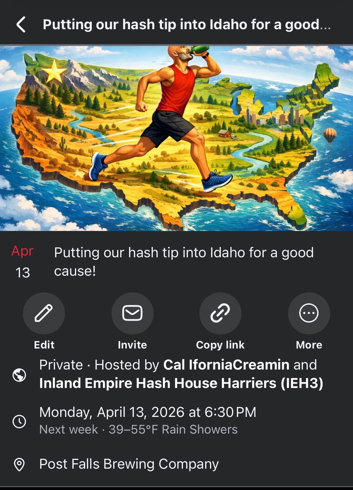 Post Falls hashPost Falls hash 3 3 people viewed this event.Cum hash in post falls, ID on April 13 at 6:30pm. Not Attending Attending Interested Not attending Author California Creamin' AttendeesNobody joined yet Date And Time 2026-04-13 @ 06:30 PM to 2026-04-13 @ 10:00 PM Location Post Falls Brewing Company, North Spokane Street, Post Falls, Idaho, United States Event CategoryRegional Hash